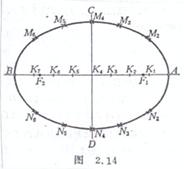 .再将这些交点连同A,B一起用光滑曲线顺次连接,即近似于所求椭圆(图2.14).