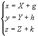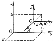 式中x, y, z为旧坐标;X, Y, Z为新坐标;g, h, k为新坐标系原点O¢ 在旧坐标系内的坐标