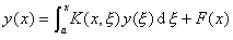 这是一个第二类沃尔泰拉方程,核Kx的线性函数。