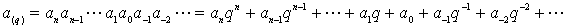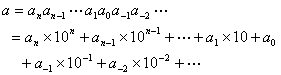 式中数字ai{0,1,2,L,q-1}中取值,anan-1La1a0称为q进数a(q)的整数部分,记作[a(q)];