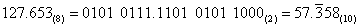 127.653(8)=001 010 111.110 101 011(2)