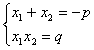 x2+px+q=0