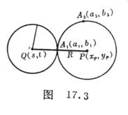 Knowing the circle Q and a point outside the circle , find the circle P so that it passes through the fixed point and is tangent to the circle Q at the fixed point ( Figure 17.3 ) .