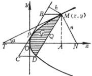 式中a为点M(x, y)的切线与主轴的夹角,n为法线MN之长.特别,顶点的曲率半径R0 = p |
