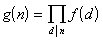 g(n)称为f(n)的乘积麦比乌斯变换,f(n)称为g(n)的乘积麦比乌斯逆变换.